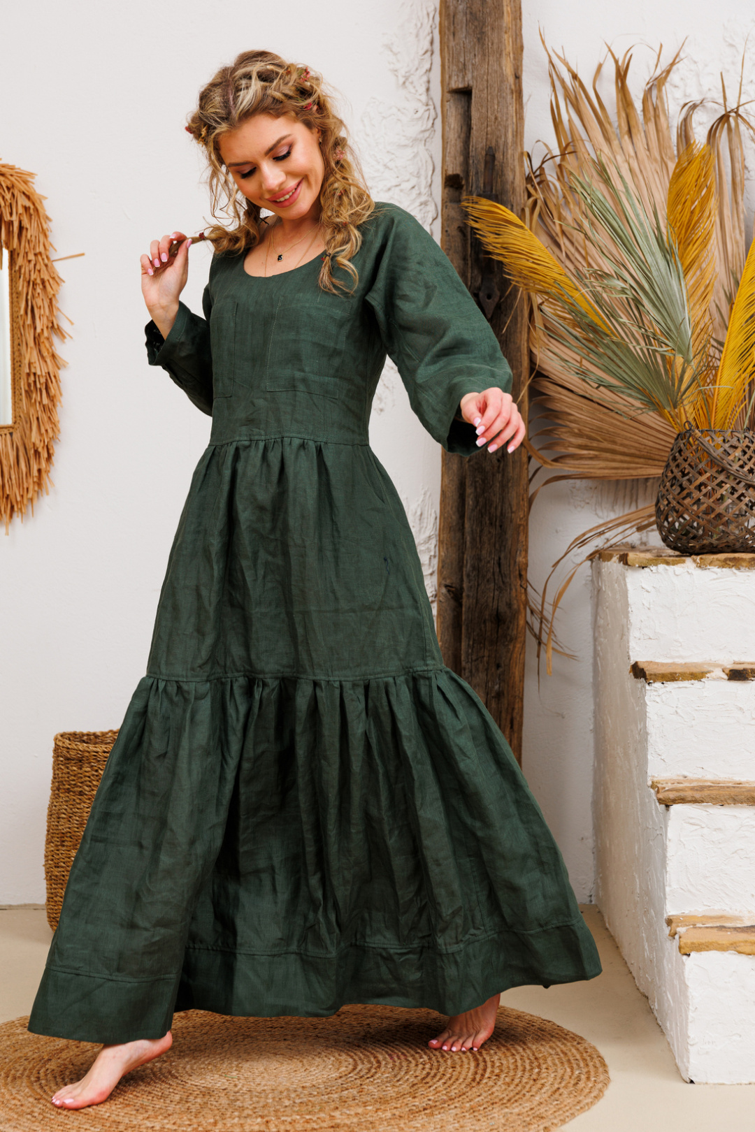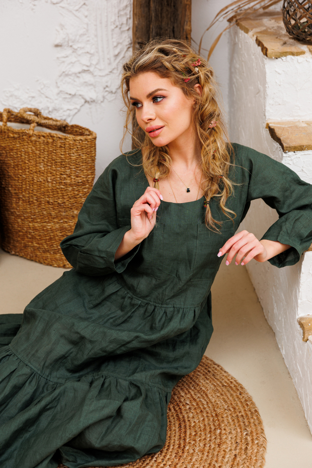 Натуральное льняное шикарное платье со смыслом. Такое игривое, такое пышное, такое привлекательное для восхищённых взглядов. Карманов на этой модельке предостаточно: и на груди и по боковым швам. Кррасивый рукавчик 7/8 со складочками по низу. На груди идёт очень глубокая обтачка уголком к талии, что создает эффект стройности и дополнительно защищает грудь и позволяет ходить без нижнего белья. Что ещё удивительного в наших платьях, это то, что они прекрасно смотрятся и летом и зимой по грубые ботики, дутые куртки и разные пальто. Каждое платье бренда АМУЛЕТ создано с применением древних славянских принципов по изготовлению обережной одежды. Обращаю Ваше внимание на то, что к заказу надо подходить осознанно, с пониманием ценности, а возвраты или неоплата, не в вашу копилку Благочестия, как говорится ). Мы Вас Любим и в подарок в комплекте к платью прилагаем сумку-шопер с логотипом бренда. Это ПЛАТЬЕ для Радости и Благости!!! Наслаждайтесь!!!