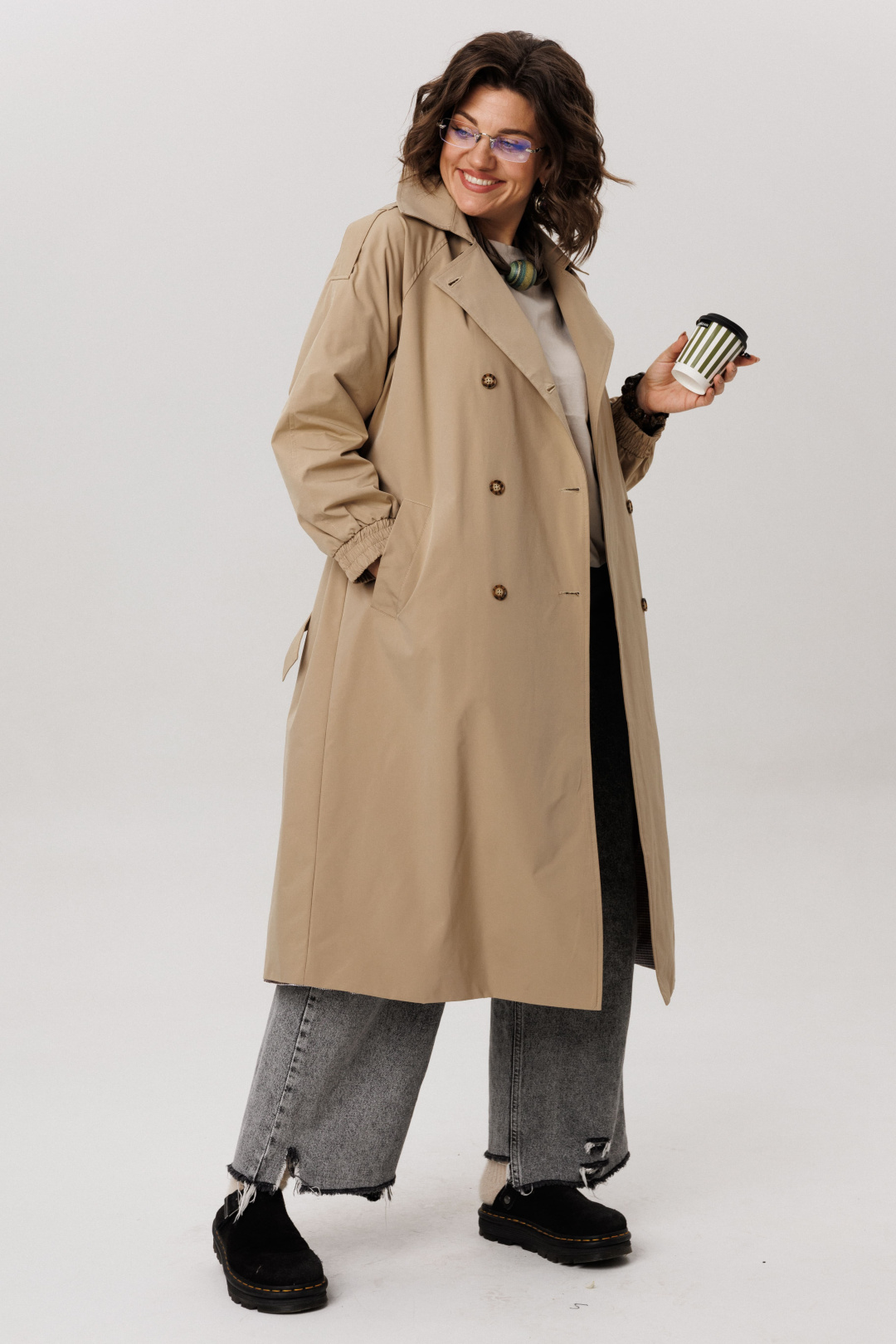 Обратите внимание, что это тренч оверсайз. Он идет на размер больше. Если любите оверсайз то берите свой размер, если любите по фигуре то на размер меньше. Обращайте внимание на замеры готового изделия.