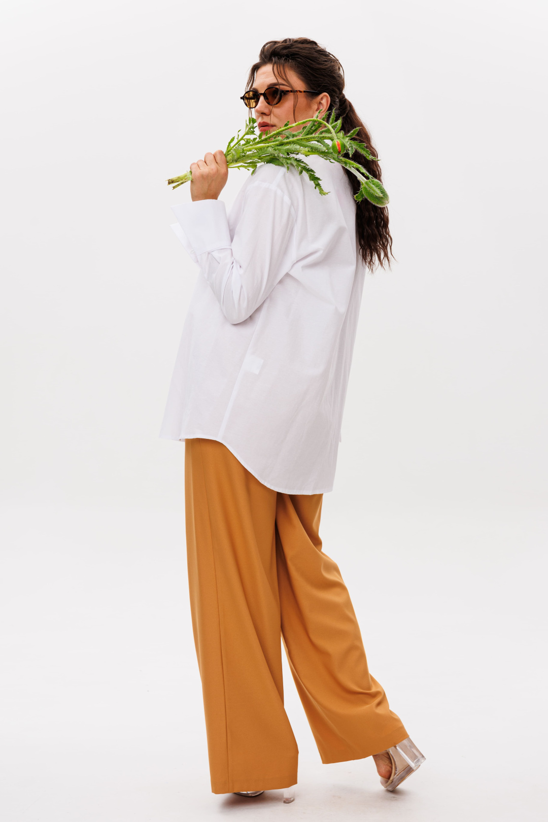 Эти брюки станут драгоценным аккордом в вашем гардеробе – они одинаково прекрасно сочетаются с хрустящей белой рубашкой для офиса 1203, с нежным кремовым свитером для прогулки или с атласным топом для вечернего выхода. Вы ощутите ту особенную уверенность, которую дарит идеально сидящая вещь премиального качества. Это не просто брюки – это воплощение солнечного настроения и безупречного вкуса.