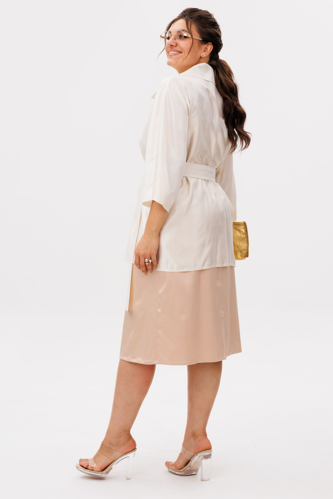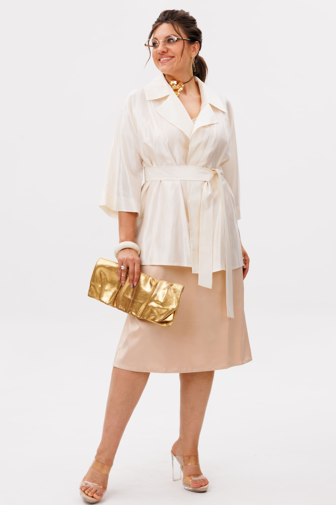Днем его легко дополнить объемным свитером, создав стильный повседневный ансамбль. С наступлением вечера платье легко преображается с помощью элегантного жакета 1508, готовое покорять своим сдержанным шармом. Эта вещь создана для тех, кто ценит многогранность и готов делиться своей красотой с миром.
