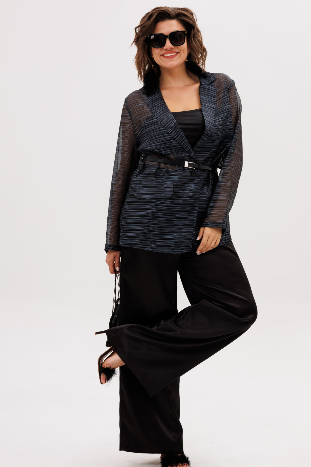 Невесомый и прекрасный, он привносит ощущение праздника в любой образ, сохраняя при этом благородную сдержанность благодаря строгому цвету. Этот жакет от Анелли создан для того, чтобы быть наброшенным на платье, тонкие блузы или топы, раскрывая их красоту и добавляя образу объема и изящества. Для более четкого силуэта его можно стилизовать с поясом, подчеркивая талию.