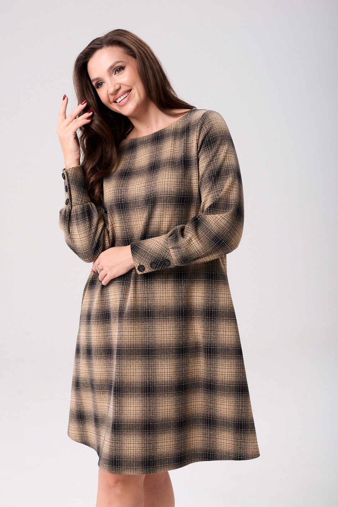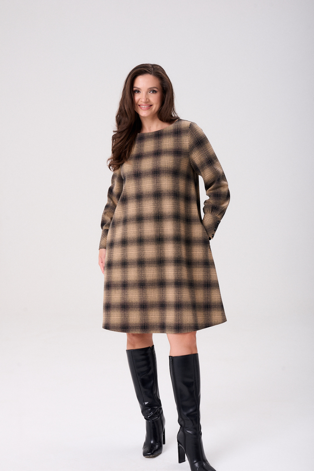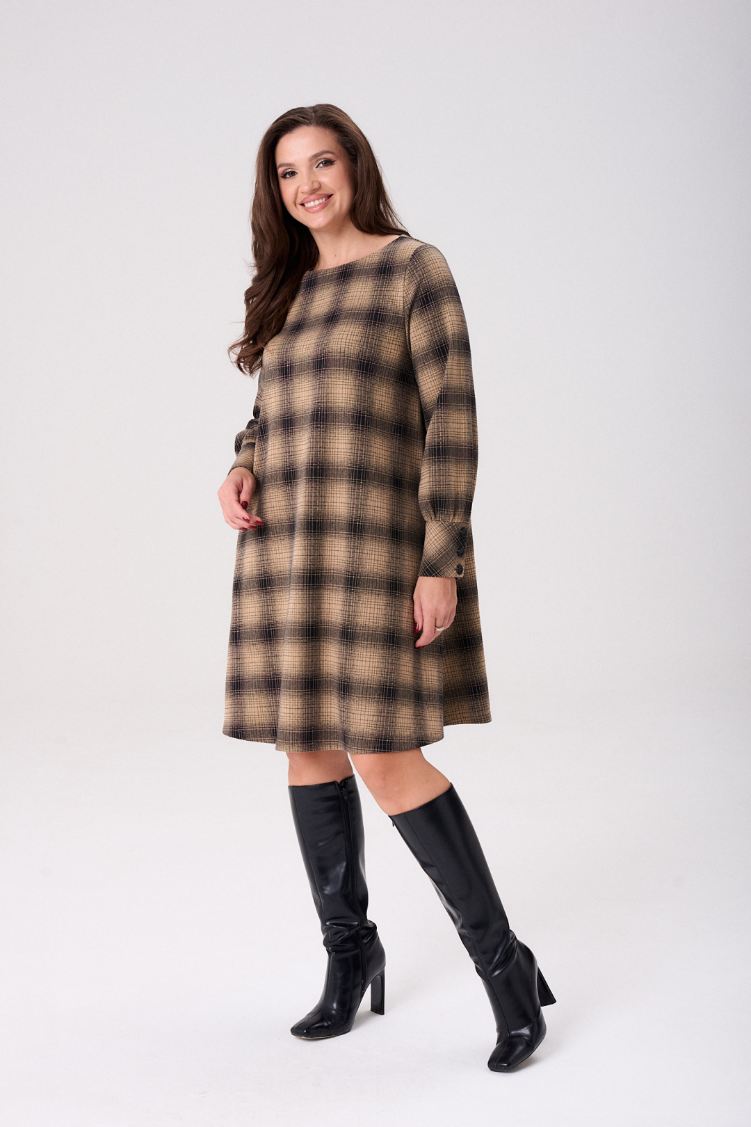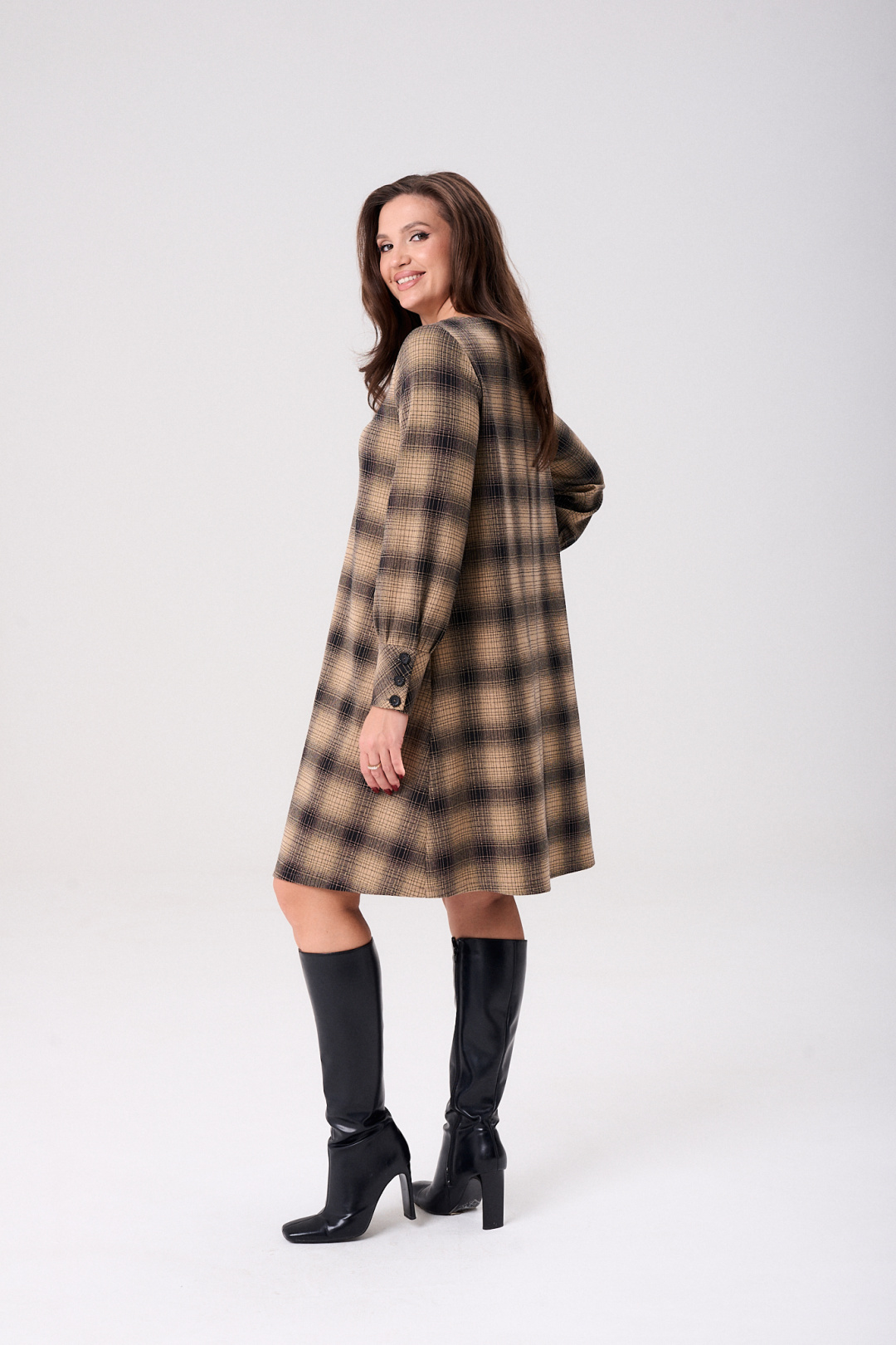Стильное молодежное платье от бренда «AXXA» трапециевидного силуэта из высококачественного турецкого трикотажа. Изделие выгодно подчеркивает достоинства фигуры, скрывая при этом недостатки. Вырез горловины округлой формы. Рукав полной длины, оформлен притачной манжетой застегивающейся на ряд декоративных пуговиц. В боковых швах предусмотрены функциональные карманы. Уютное трикотажное платье в клетку с 3D эффектом в трендовой расцветке, безусловно, станет фаворитом в Вашем гардеробе.