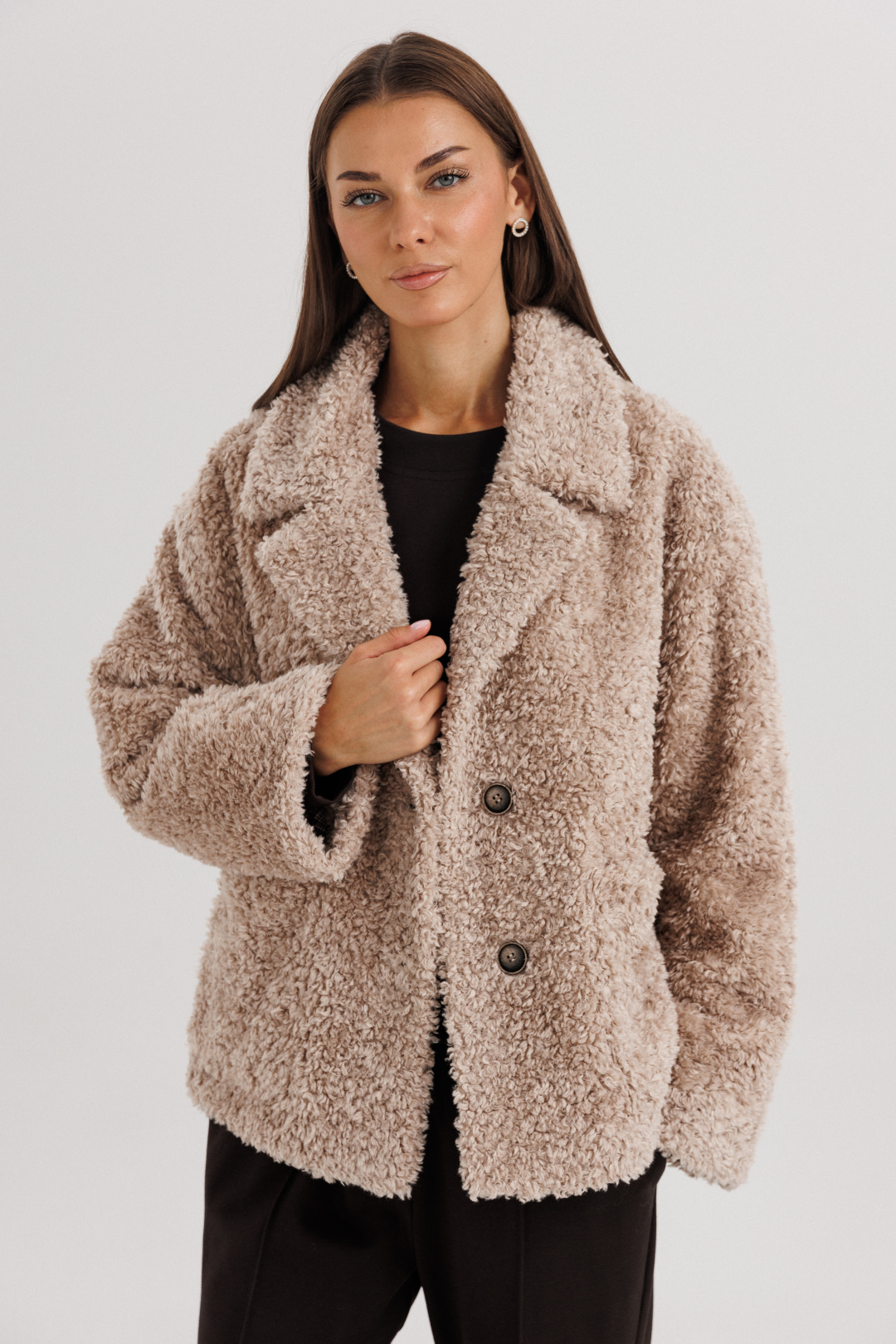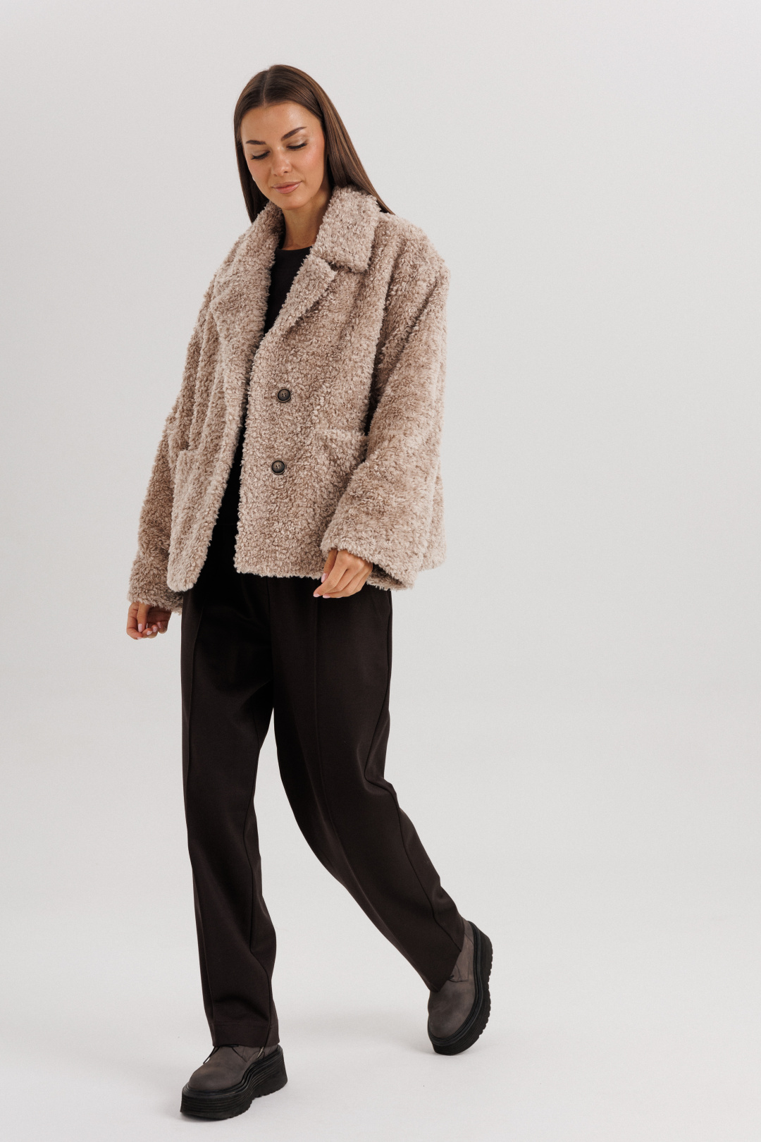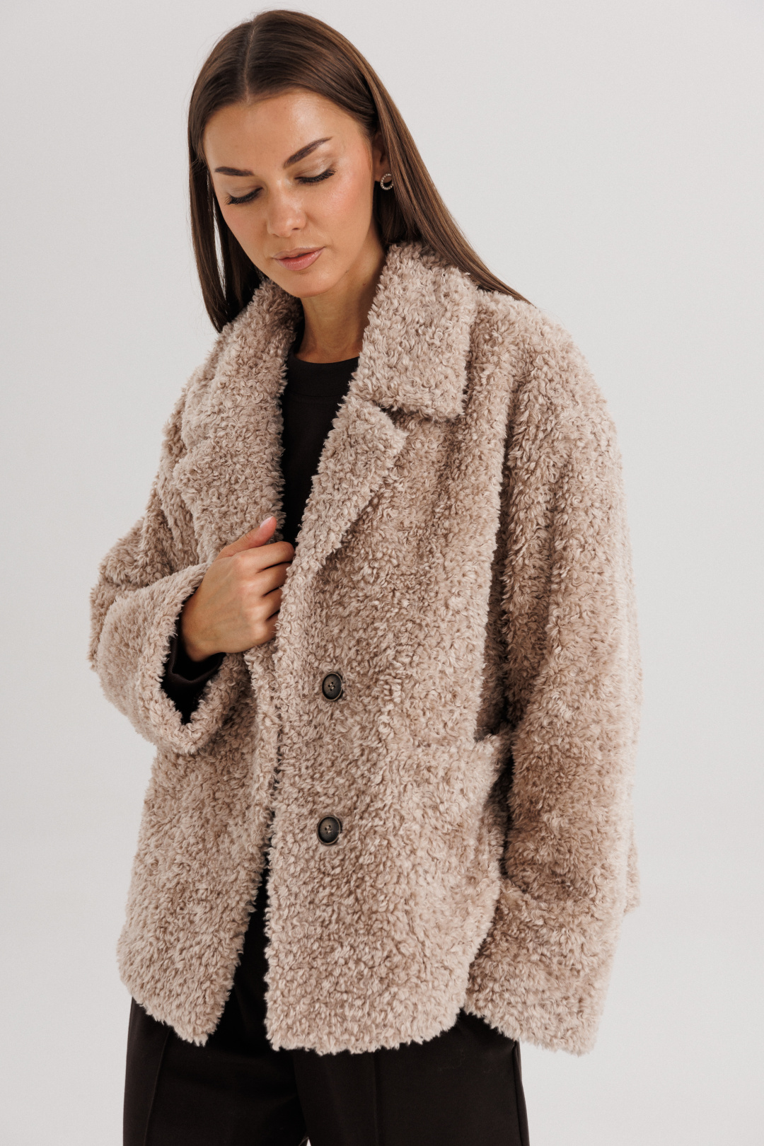 Модель выполнена с однобортной застёжкой на пуговицы, широким отложным воротником и удобными накладными карманами. Универсальный бежевый оттенок легко сочетается с различными элементами гардероба: будь то классические брюки, джинсы или романтичные платья.