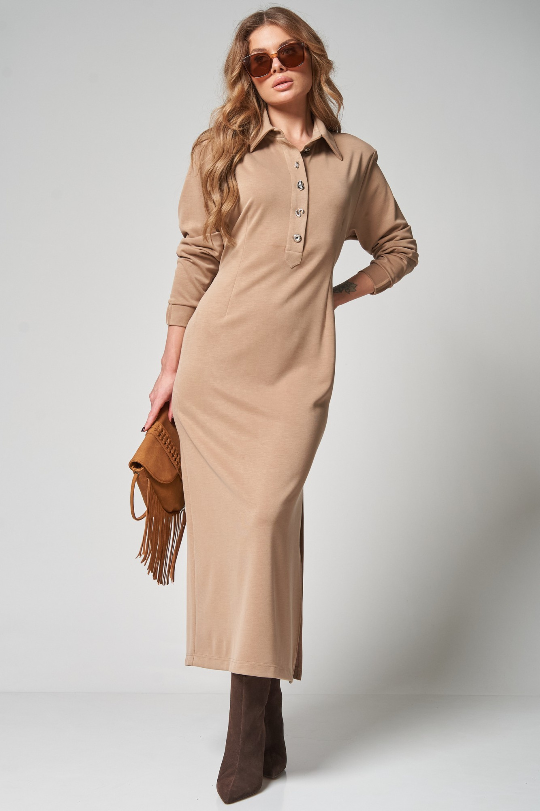 Трикотажное платье от LAIKONY полуприлегающего силуэта длиной макси.