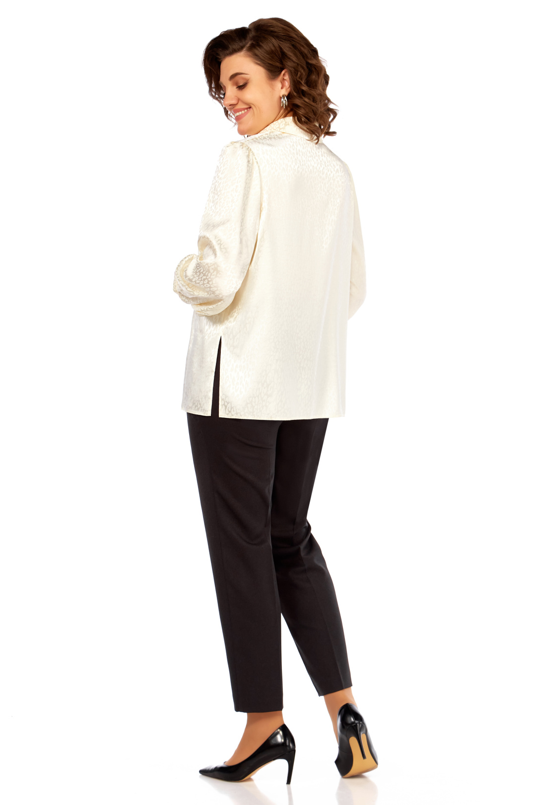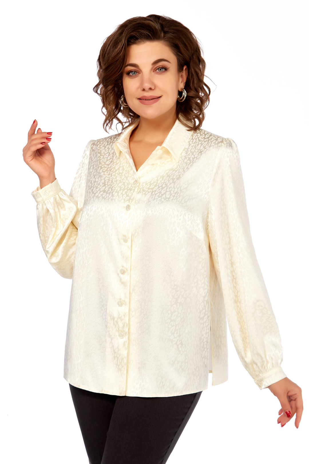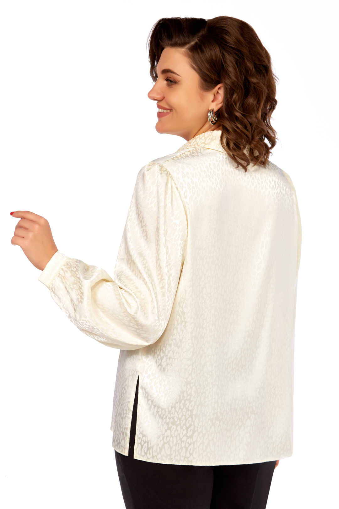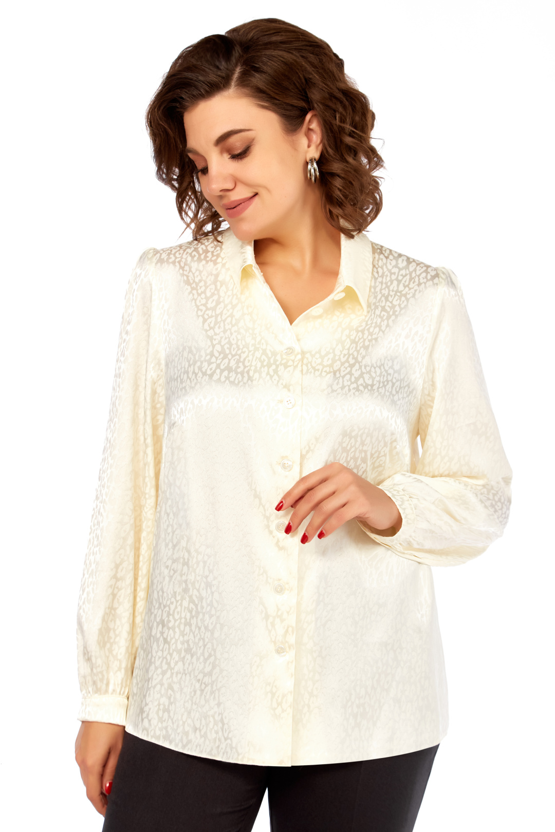 Элегантная блузка из тонкого атласа с жаккардовым рисунком предлагает современный взгляд на классический силуэт. Блузка обладает прямым кроем, который придает изысканность и универсальность любому образу. Нежный бежевый оттенок украшен деликатным блеском ткани, выделяющим блузку среди более простых нарядов. Дизайн включает стильный воротник-стойку и функциональную пуговичную застежку спереди, что придает блузке аккуратный вид. Рукава длинные, расширенные к низу с элегантными сборками как в верхней части, так и в области манжетов, что добавляет изысканной женственности. Манжеты дополнены кнопками, которые служат не только функциональной деталью, но и украшением. Блузка идеально подойдет для создания как деловых, так и более легких повседневных ансамблей, добавляя нотку роскоши и шарма каждому наряду.