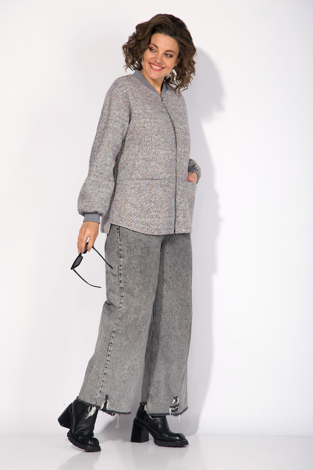 Женский твидовый жакет, по типу бомбера – стильная женская одежда на каждый день, которая станет отличным дополнением повседневного гардероба. Модель свободного силуэта, со спущенной линией плеча. Рукав длинный, с притачными манжетами по низу. Застежка центральная, на металлическую тесьму-молнию. Горловина обработана трикотажной планкой по типу – бомбера. Низ по полочке фигурный, по спинке удлинен. По полочке расположены рабочие карманы в шве! Свободная оверсайз модель подходит практически под любую фигуру. Модель на шёлковой подкладке! Длина по спинке – 70 см, рукав – 62 см.