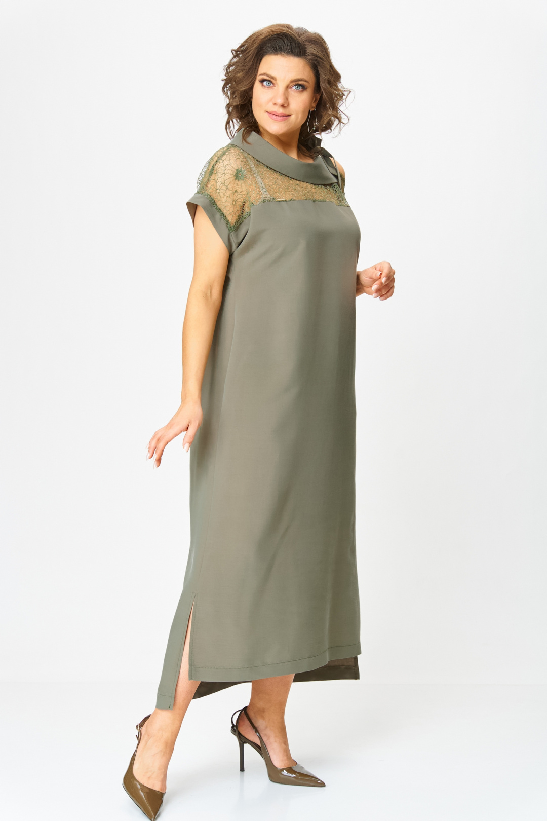 Женское летнее платье как для повседневного так и любого праздничного выхода, из однотонного материала , силуэт прямой полуприлегающий , перед и спинка с плечевыми кокетками из гипюра в тон основного материала. Воротник стойка на завязке по плечевому шву. В боковых швах имеются карманы и разрезы по низу, спинка платья удлиненная. Длина спинки 135 см.