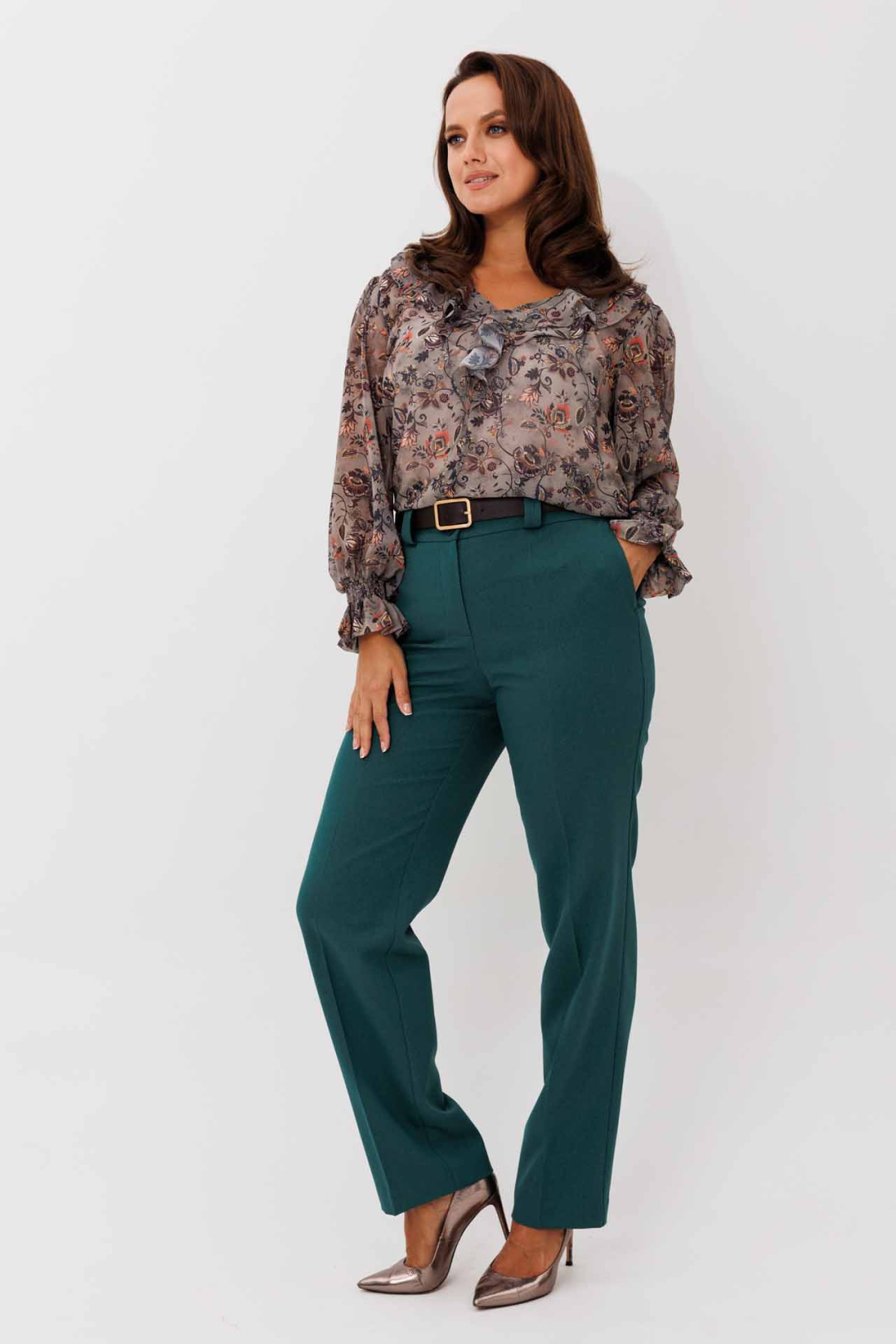 Блуза женская, рукав втачной со сборкой по окату. Рукав расширяется к низу. V-образный вырез с двойным воланом. Низ рукава обработан манжетой на венгерке. В комплекте топ хлопка(100%) на регулируемых бретелях.