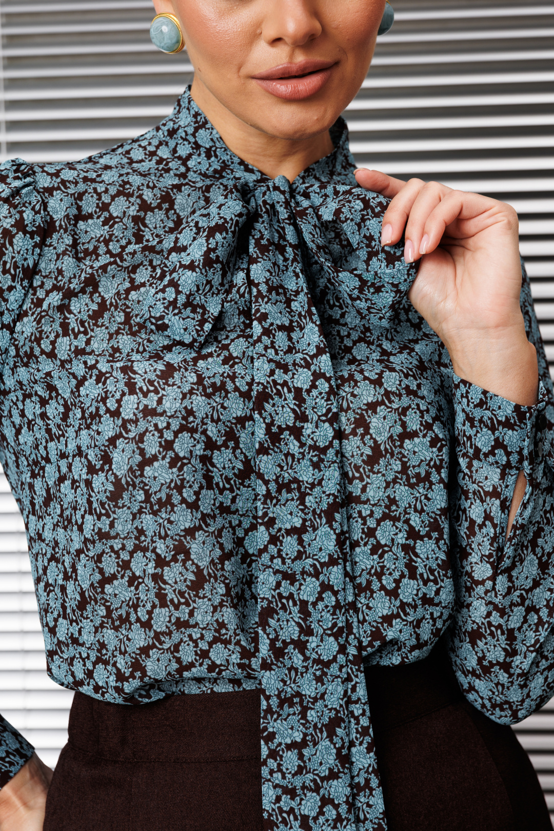 Эта классическая блузка отличается элегантным дизайном и вниманием к деталям. Блуза прямого силуэта, в боковых швах с разрезами, по переду с нагрудной вытачкой. Воротник-стойка, переходящий в бант. Рукав втачной, одношовный, снизу на манжете. Сверху по окату со сборкой. длина по спинке: 71см длина рукава: 62,5 см