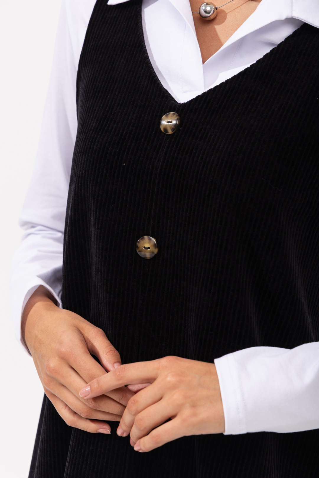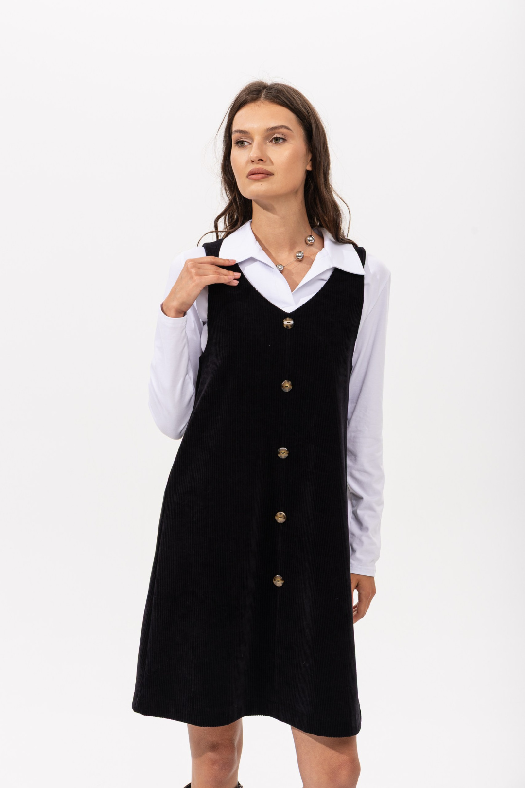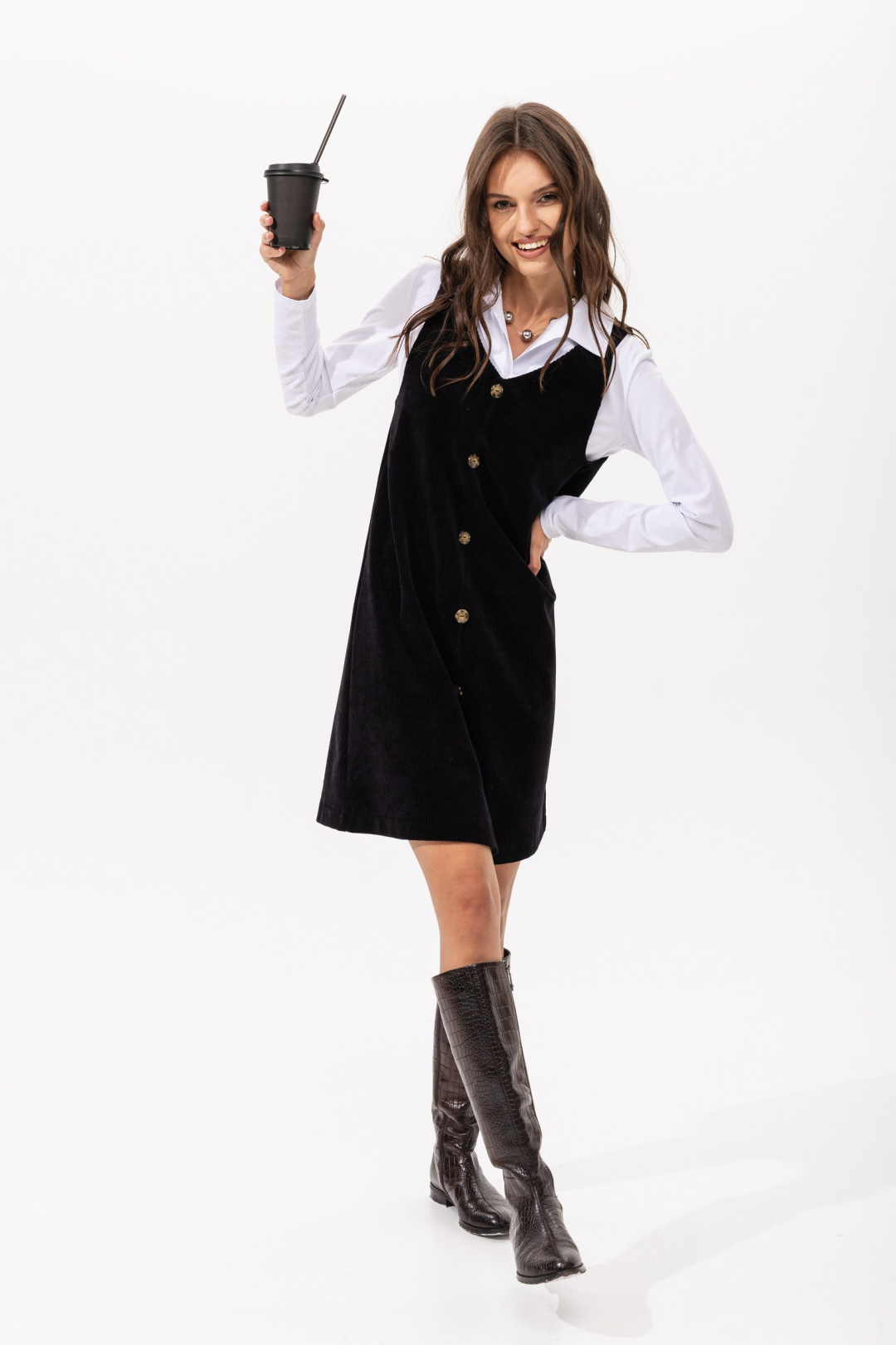 Стильный сарафан-комбинезон из вельвета с пуговицами