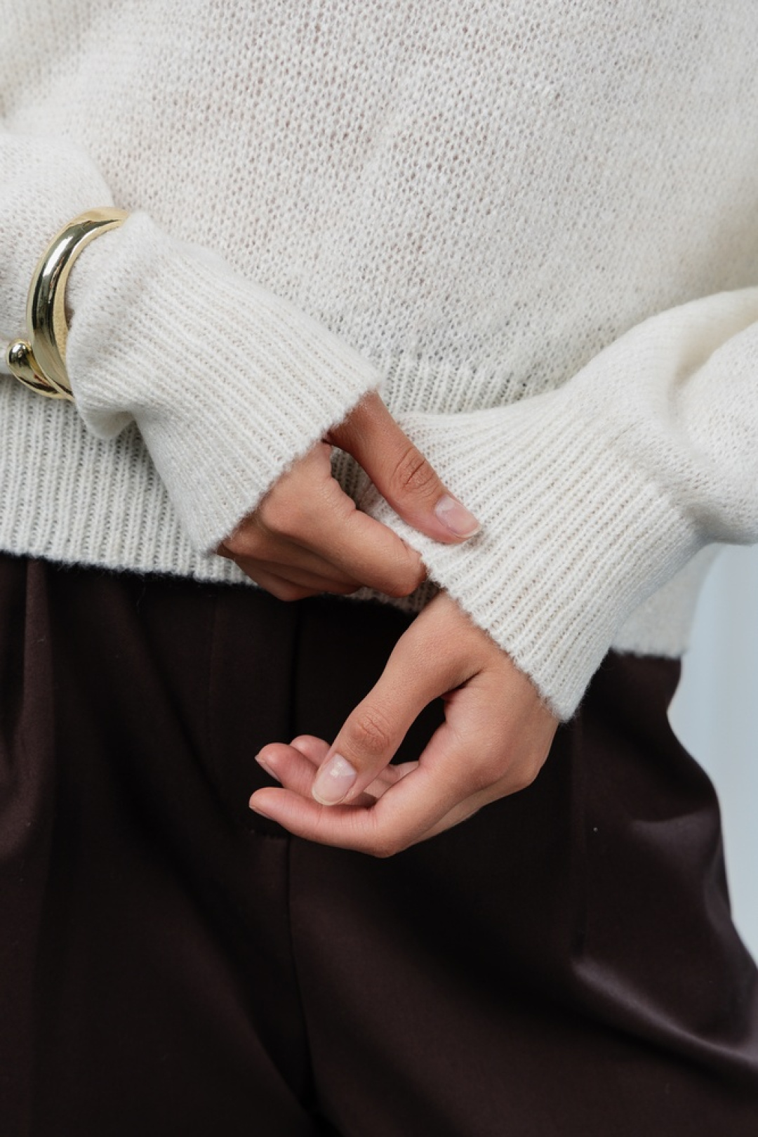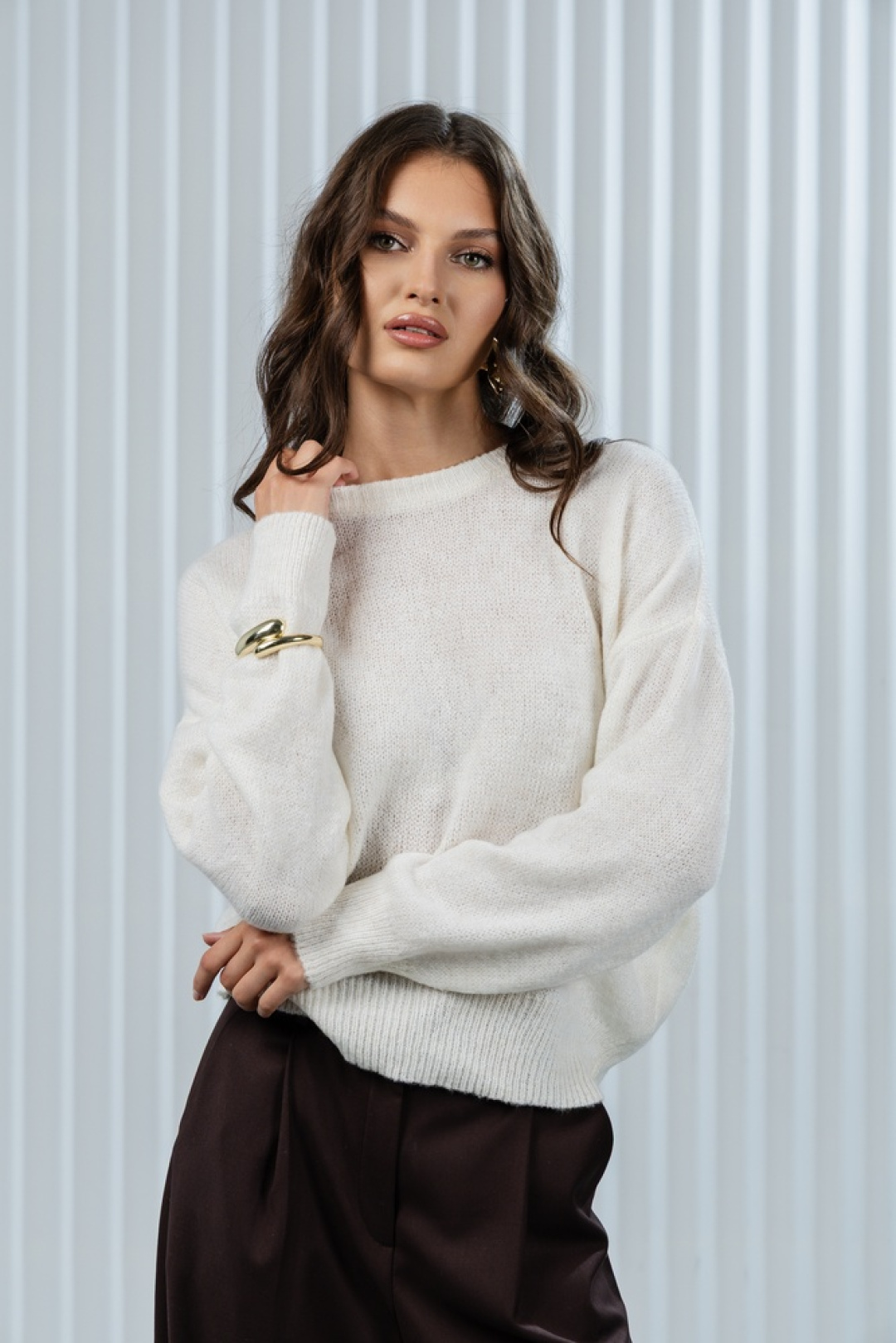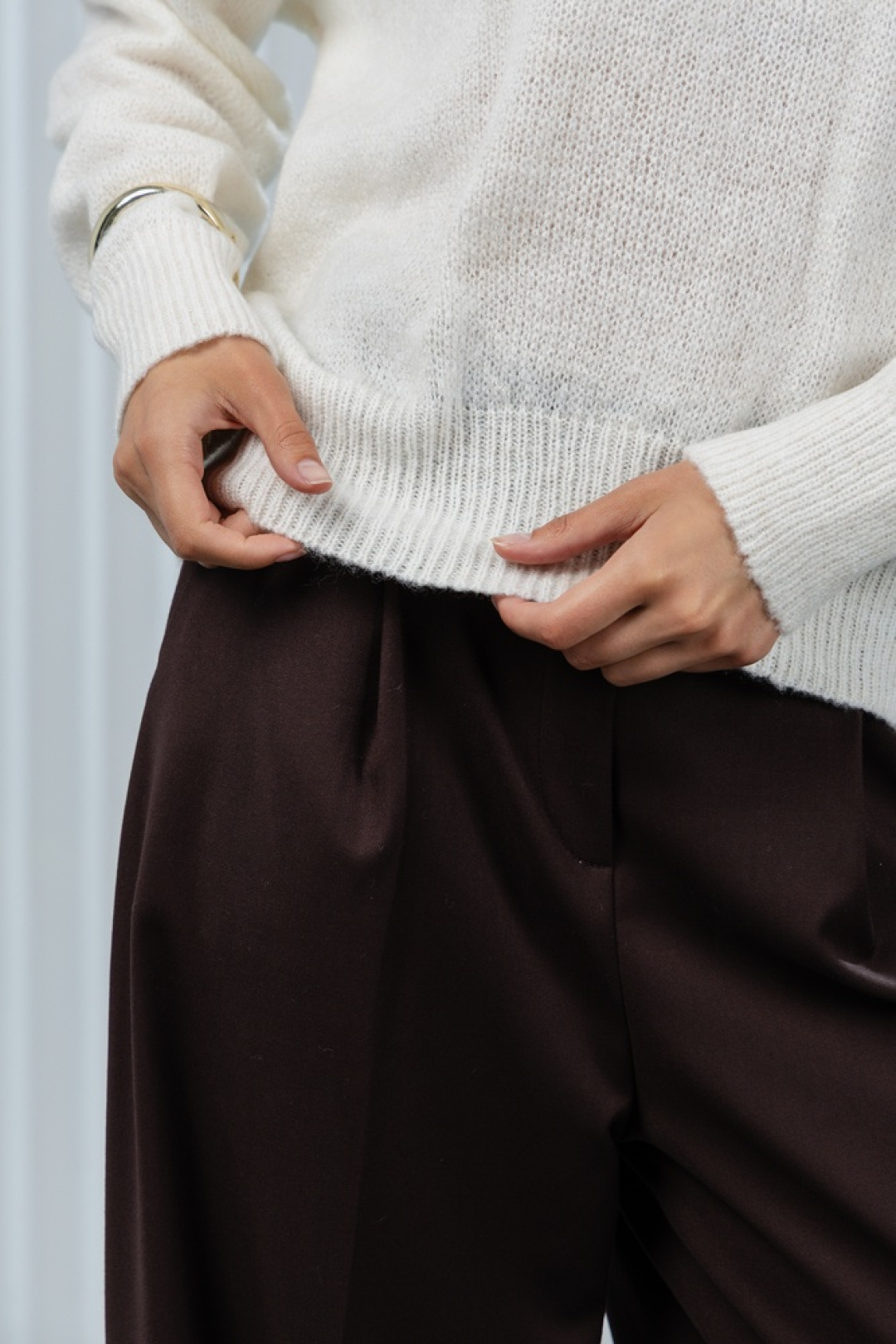 Стильный и удобный джемпер из мягкой пряжи станет идеальным дополнением вашего гардероба в прохладные дни. Базовые оттенки (молочный, светло-серый, шоколадный, черный) делают его универсальным — он легко сочетается с любыми цветами и стилями одежды.