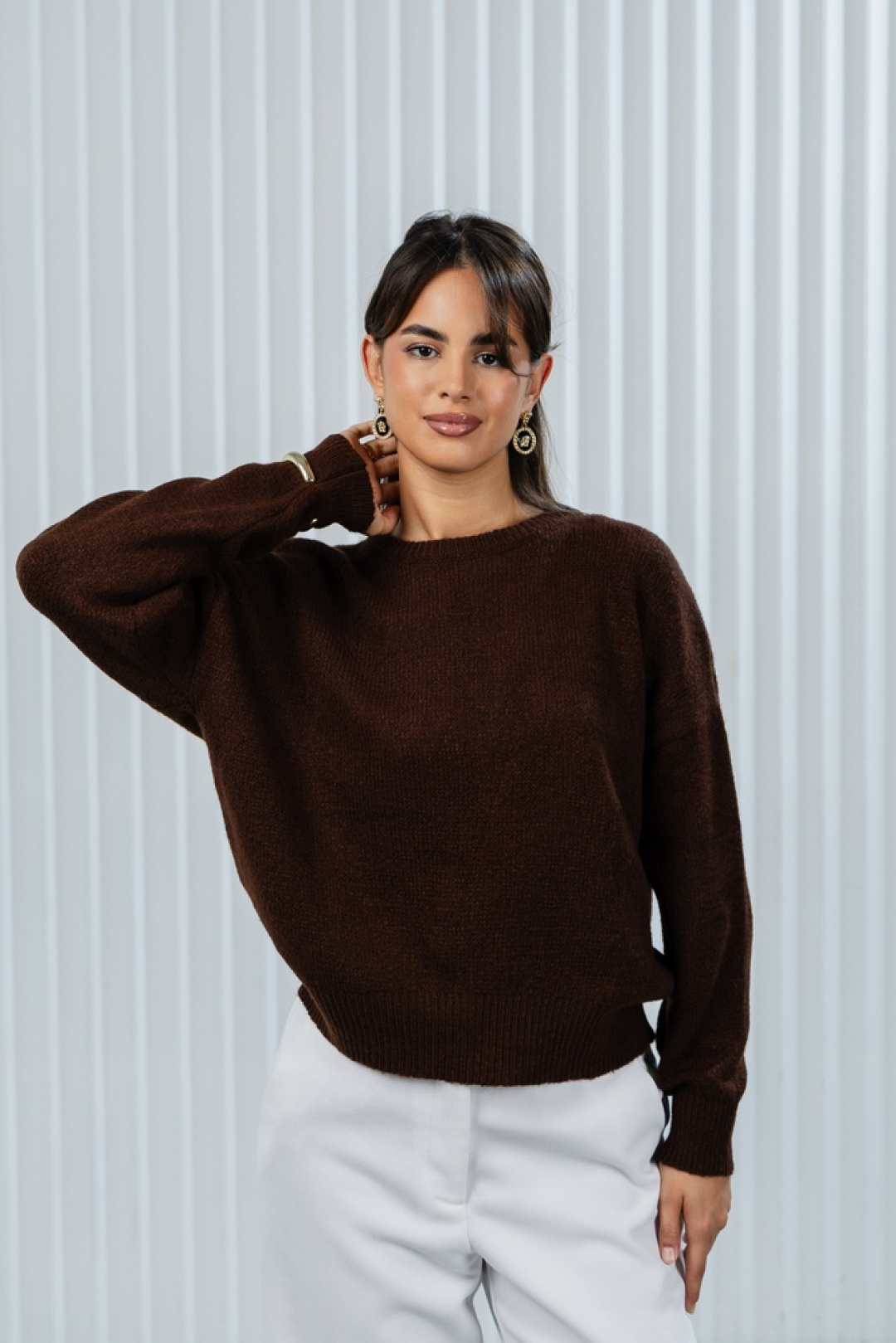 Стильный и удобный джемпер из мягкой пряжи станет идеальным дополнением вашего гардероба в прохладные дни. Базовые оттенки (молочный, светло-серый, шоколадный, черный) делают его универсальным — он легко сочетается с любыми цветами и стилями одежды.
