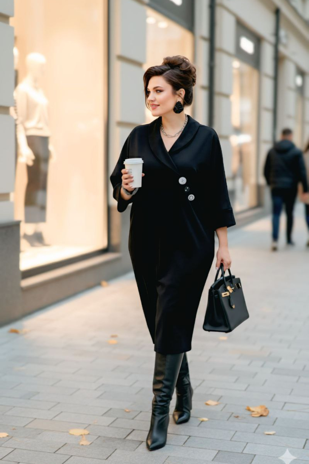 Интересный крой платья и пластические свойства трикотажного полотна помогут скрыть недостатки фигуры и создать идеальный образ. Платье свободного силуэта, заужается к низу. Горловина в платье открытая, с ассиметричным отложным воротником переходящим в подрез по переду платья. Спинка со средним швом. Рукав в платье по форме «летучая мышь» с притачной манжетой по низу.В качестве главного акцента платья, который приковывает взгляды, являются пришивные декоративные пуговицы контрастного цвета и разных размеров.Обращаем Ваше внимание, что фурнитура может незначительно отличаться от фото.