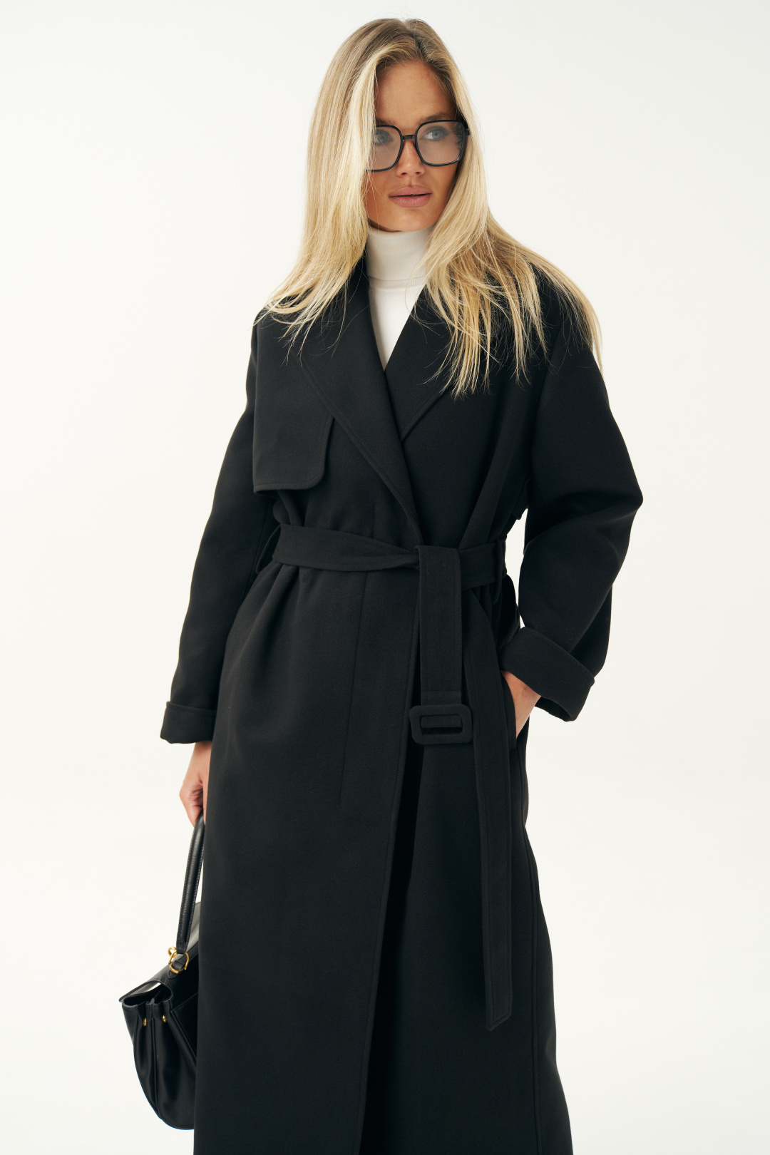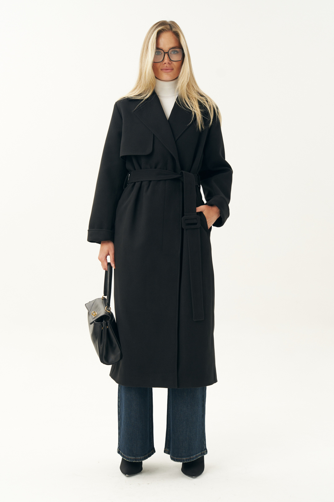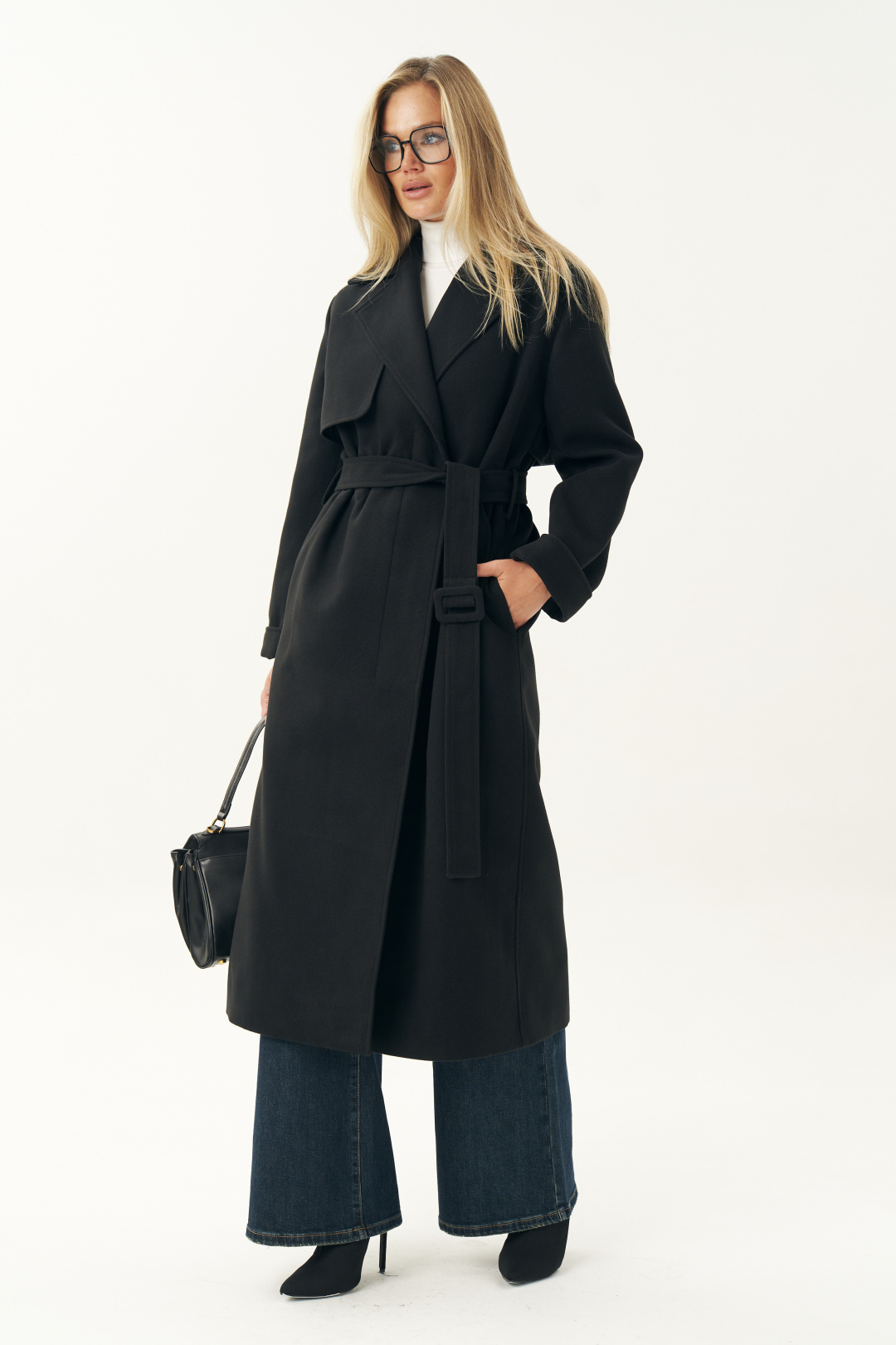 Пальто женское выполнено в классическом черном цвете, что делает его универсальной основой любого гардероба. Оно легко сочетается с деловой одеждой, повседневными образами и даже с вечерними нарядами. Черное пальто всегда было и остается символом утонченности. Пальто женское, прямого силуэта, из пальтовой ткани, на подкладке, со смещенной относительно центра переда застежкой на 3 пуговицы, (размер и цвет фурнитуры может незначительно отличаться от фото), предназначено для повседневной носки. Пальто со съемным поясом с пряжкой.