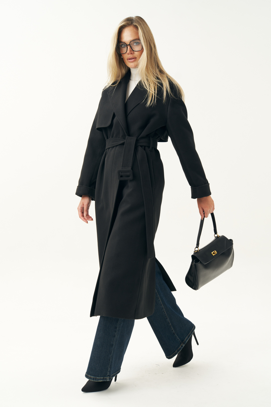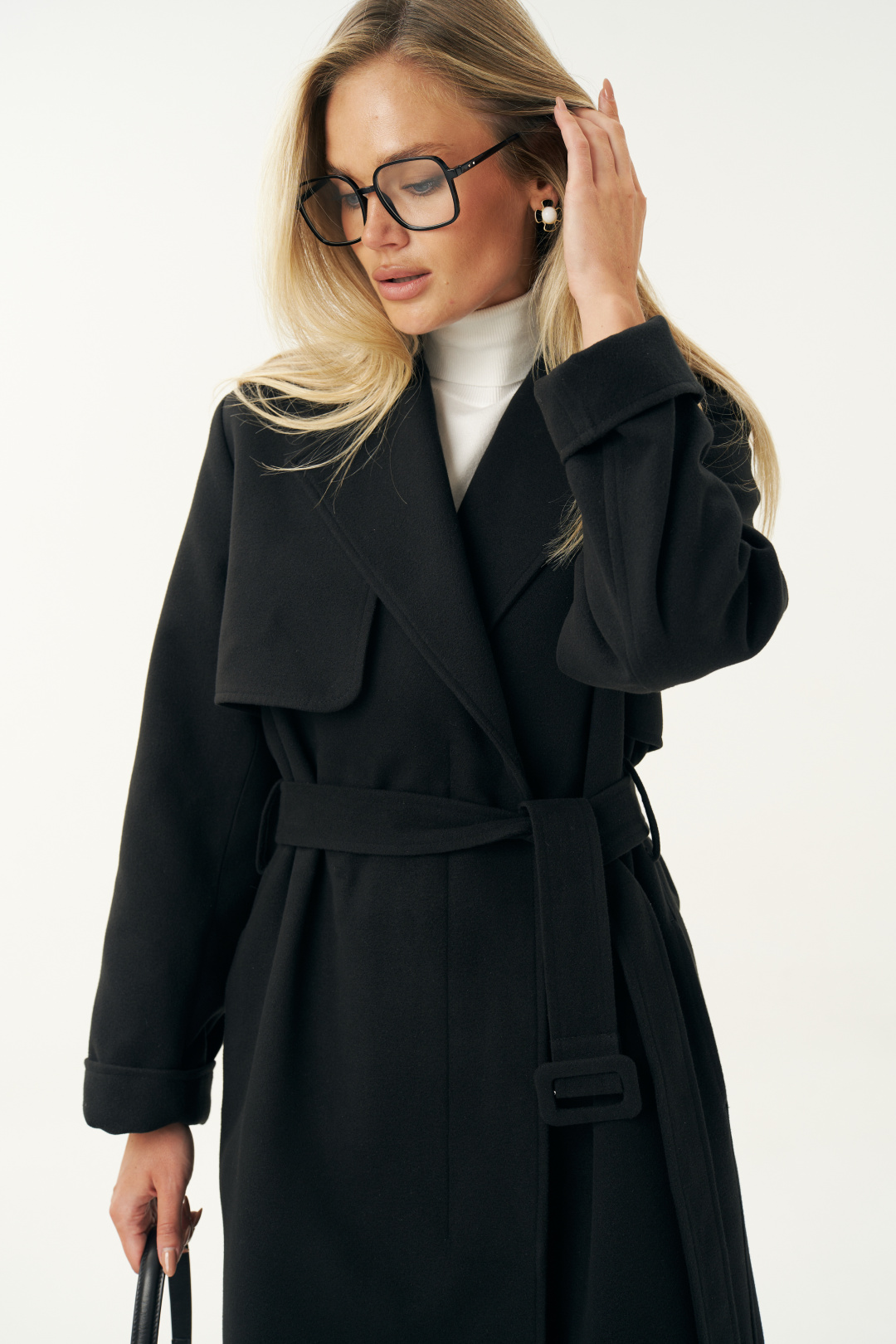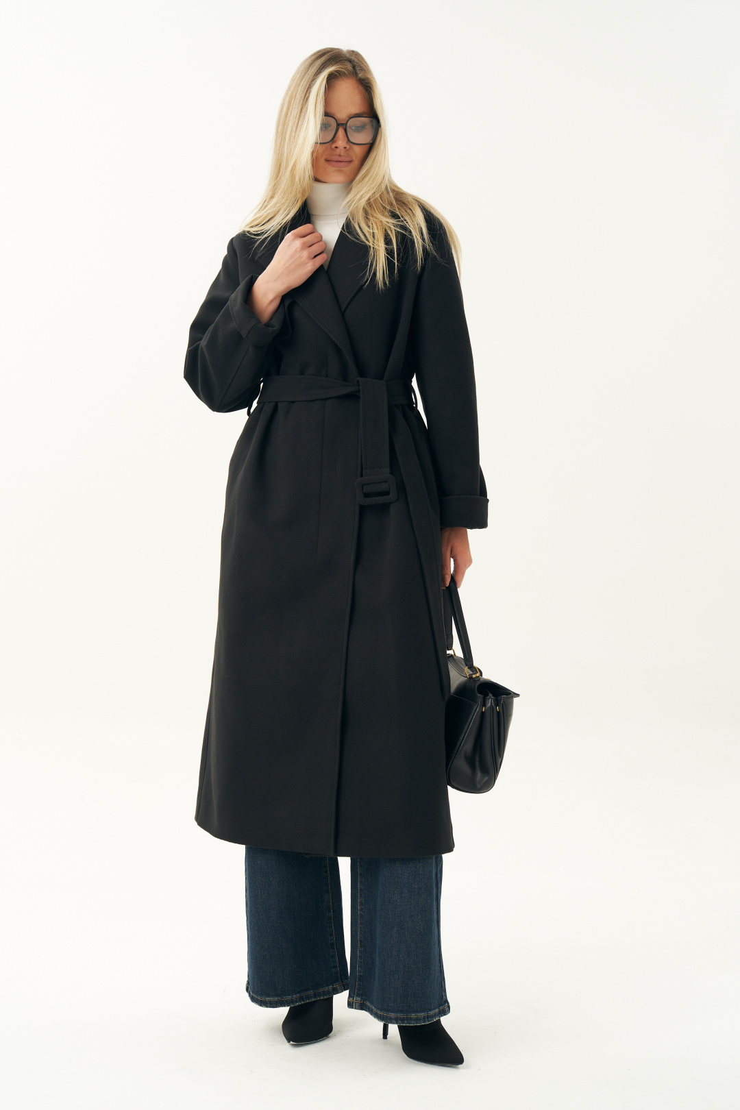 Пальто женское выполнено в классическом черном цвете, что делает его универсальной основой любого гардероба. Оно легко сочетается с деловой одеждой, повседневными образами и даже с вечерними нарядами. Черное пальто всегда было и остается символом утонченности. Пальто женское, прямого силуэта, из пальтовой ткани, на подкладке, со смещенной относительно центра переда застежкой на 3 пуговицы, (размер и цвет фурнитуры может незначительно отличаться от фото), предназначено для повседневной носки. Пальто со съемным поясом с пряжкой.