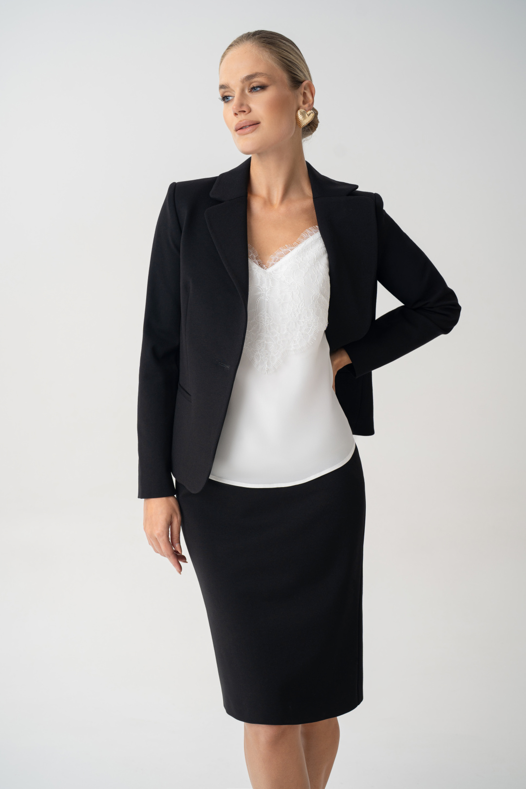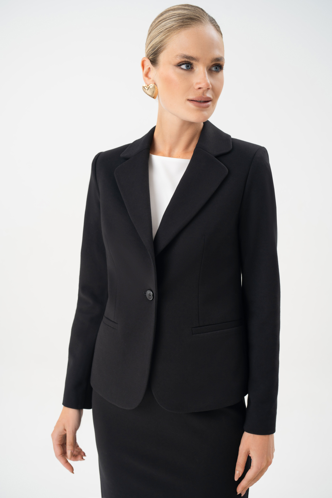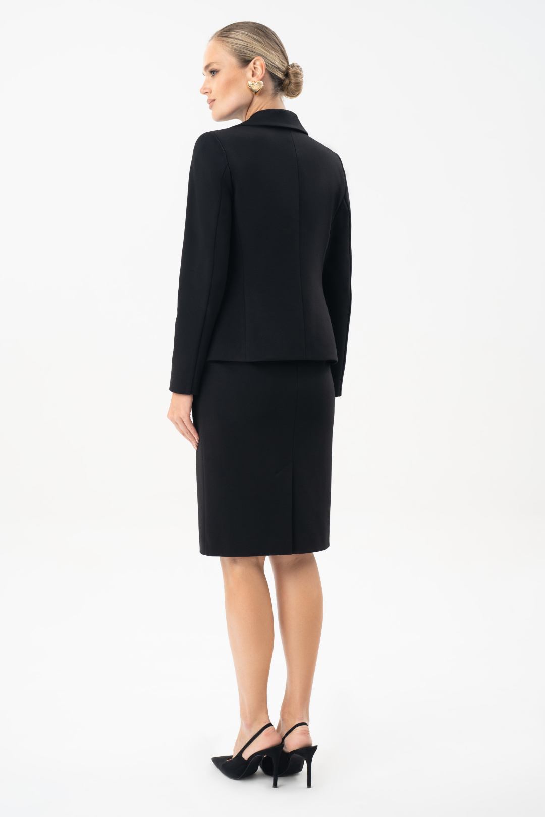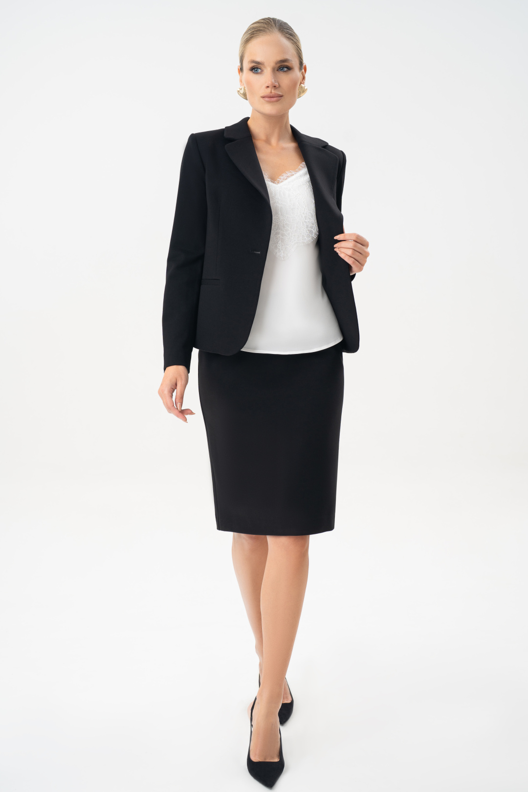 Юбка женская черная URS – это классический элемент базового гардероба, который остается актуальным в любое время года. Юбка прекрасно комбинируется с блузой 24-425-1 и является комплектом к жакету 25-641-1. Юбка женская, зауженная к низу, с посадкой на талии, выполнена из трикотажного полотна, на отлетной по низу подкладке. Юбка предназначена для повседневной носки.